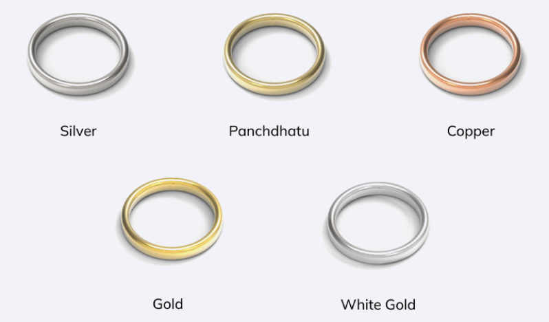 • Selection of gemstone and metal (gold, silver, panchdhatu, white gold, copper) is crucial.